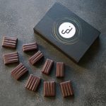 粒子感が一切ないなめらかな口どけのヘーゼルナッツ&アーモンドのプラリネをダークチョコレートでコーティング。