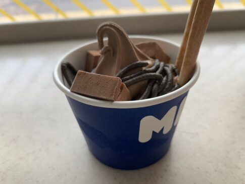ミルクが濃厚でコク深い、きめ細かな舌触り。改めてコンビニとは思えないレベルのソフトクリームです。さらにキレがある苦味のココアパウダーと見事な調和。