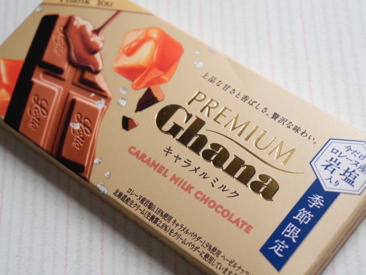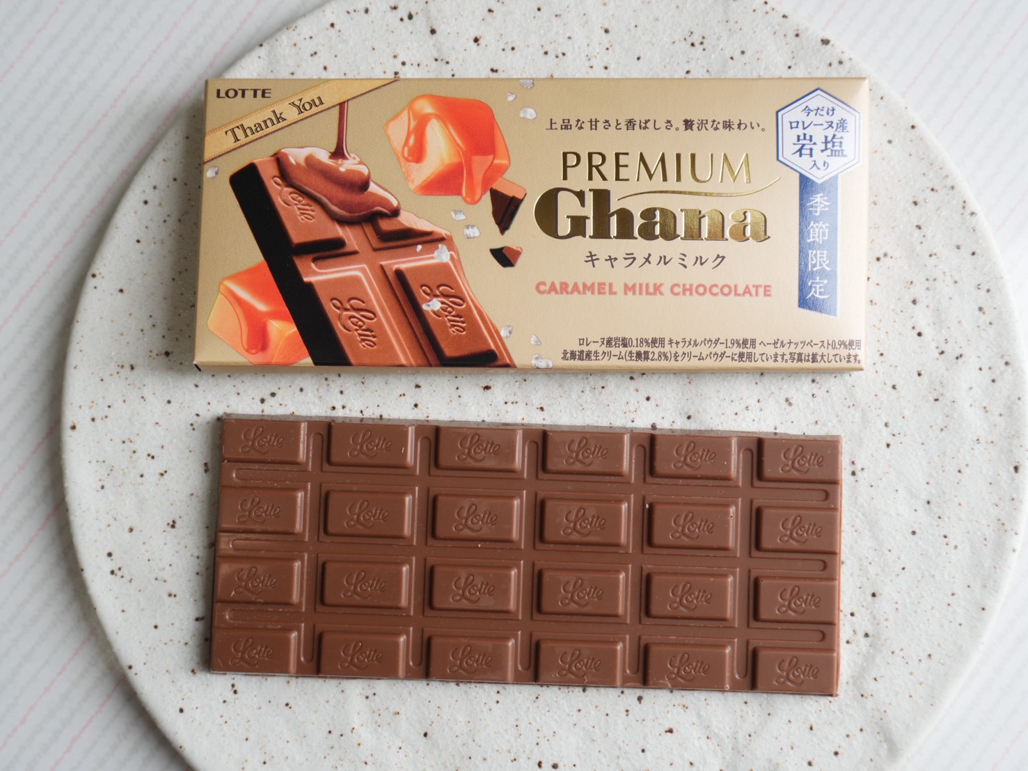ロッテの「プレミアムガーナ キャラメルミルク」を紹介します。プレミアムガーナシリーズは、いつものガーナをワンランク上の専門店クオリティに仕上げた板チョコレート。素材と製法にこだわり抜いた一枚。
