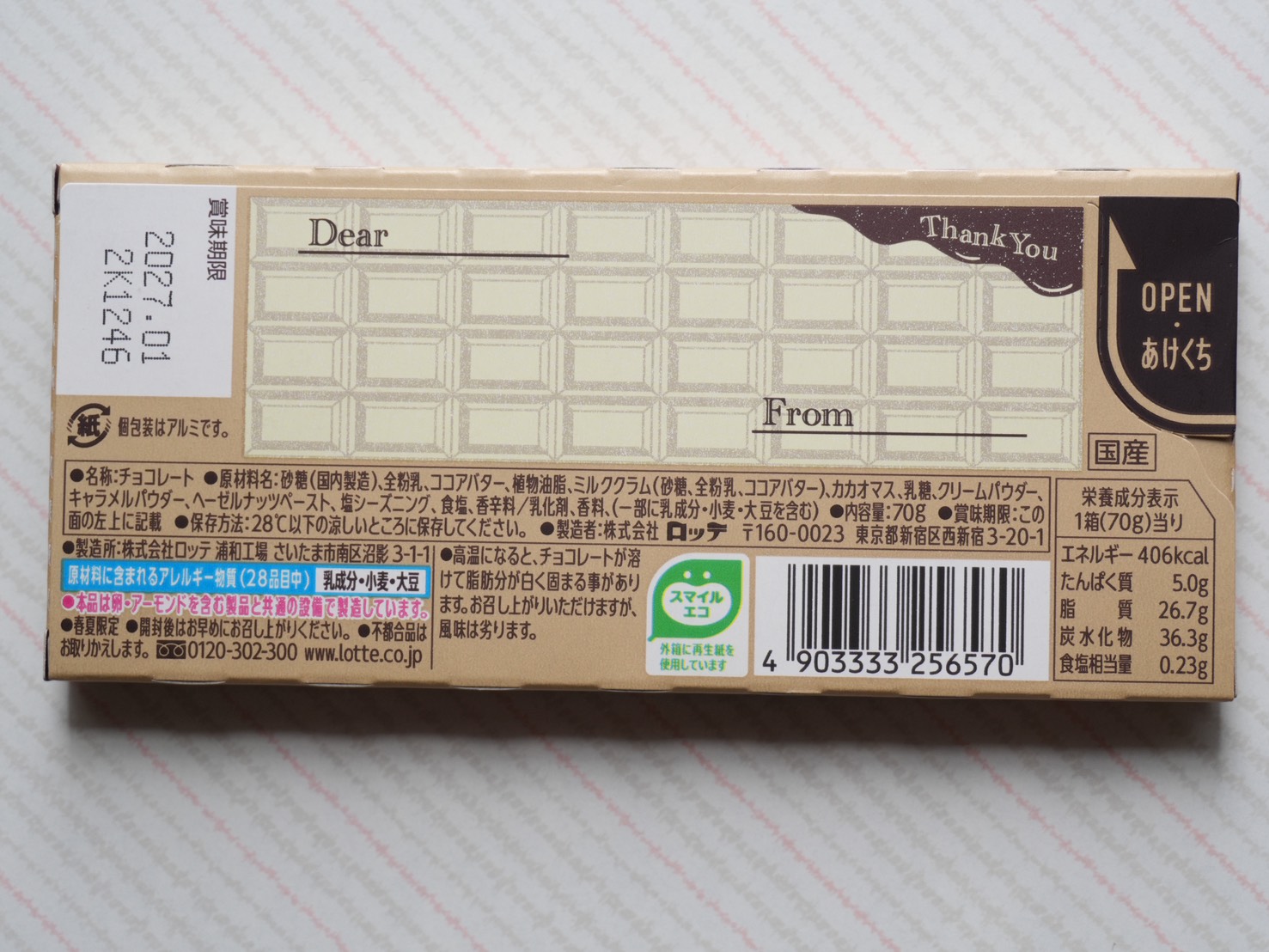 箱を開けると、キャラメルミルクのこだわりが記載されてます。