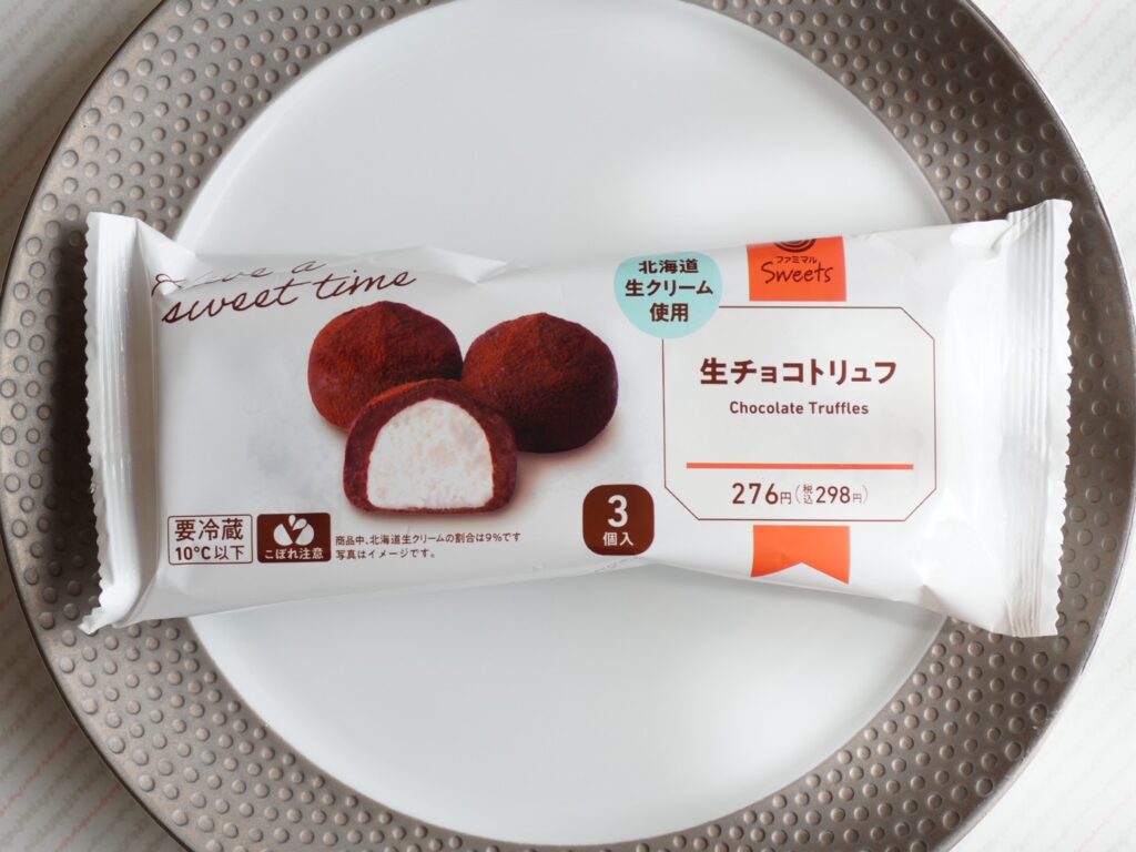 ファミリーマートの『生チョコトリュフ』をご紹介します。罪悪感少なめの一口サイズ。ファミリーマートオリジナルチョコレートと北海道産生クリームを贅沢に使った生チョコで、ふんわりホイップクリームを包み込んだという本格派トリュフです。