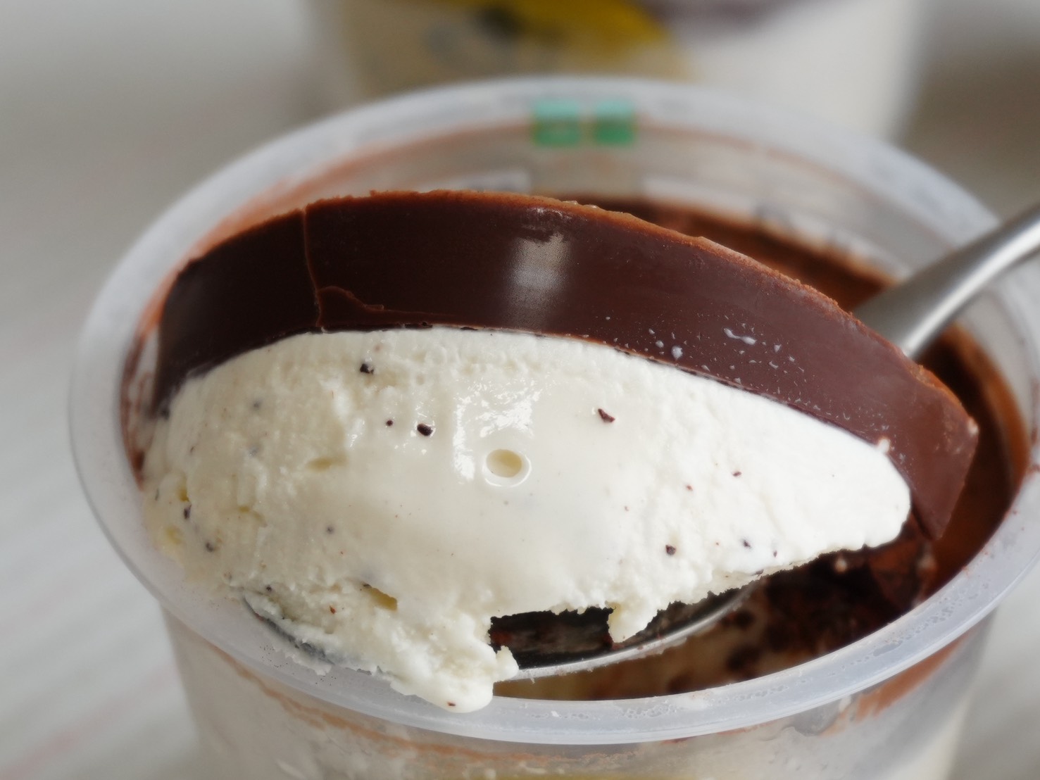 チョコの破片を一緒にすくって食べ進めると、食感のコントラストがたまりません。パリパリのチョコが溶けていく瞬間、アイスのなめらかさと混ざって口の中で一体となります。あの瞬間、贅沢なデザートタイムが完成します。