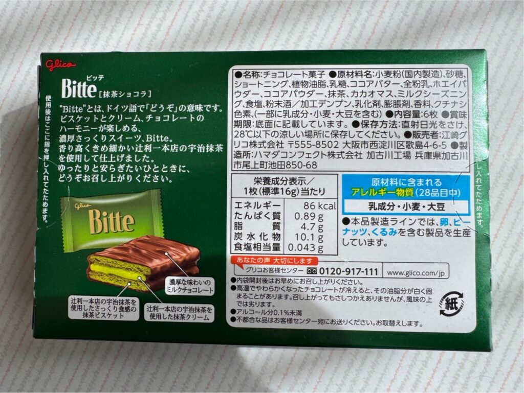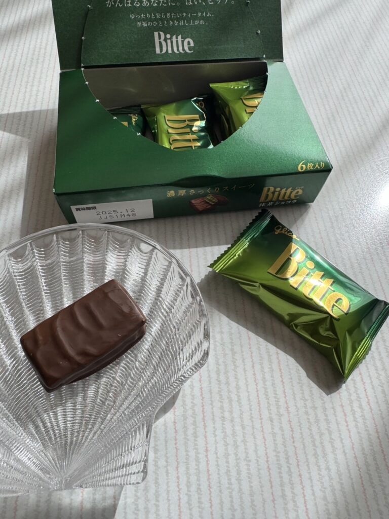 今回は江崎グリコの「ビッテ 抹茶ショコラ」をご紹介します。