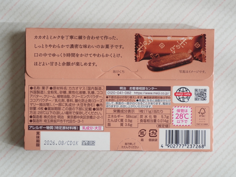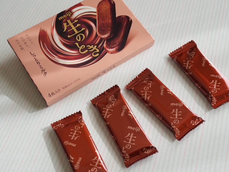 「生のとき」は明治独自の特許製法「生ねり製法」で作られています。普通のチョコが“混ぜて整える”イメージだとしたら、こちらは“練って密度を作る”感じ。食べる側に伝わるのは、口どけの良さというより、じわじわほどけていく粘度です。
