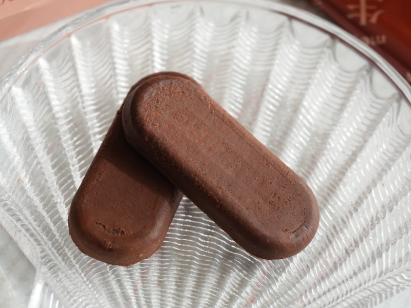 この食感が、個人的にいちばん刺さりました。噛まなくても進むのに、食べた感はしっかり残る。カカオとミルクのコク深さが上品に広がります。甘さも重たすぎず、口の中に余白ができるタイプの甘みです。