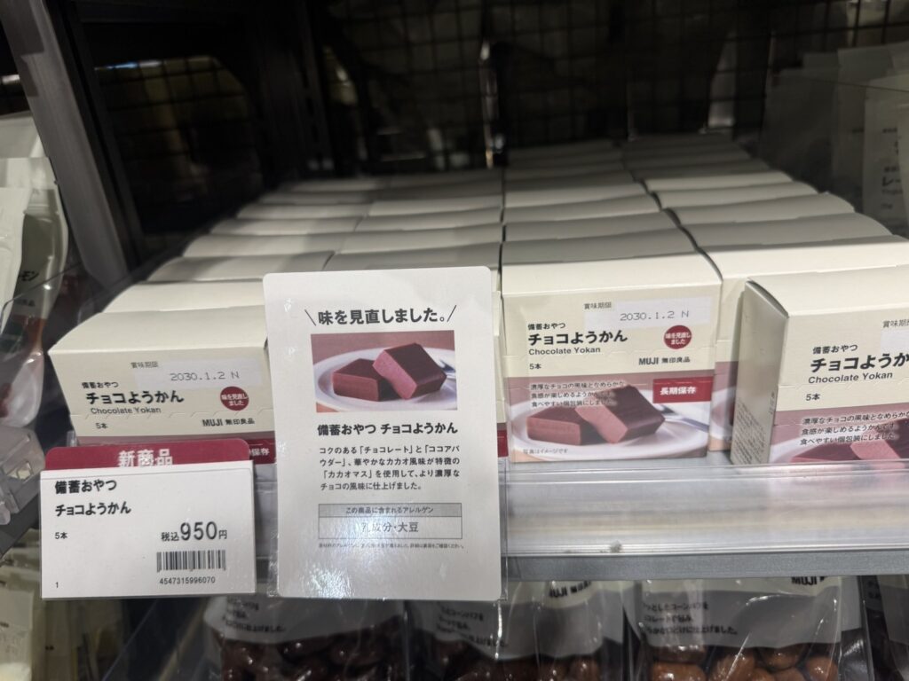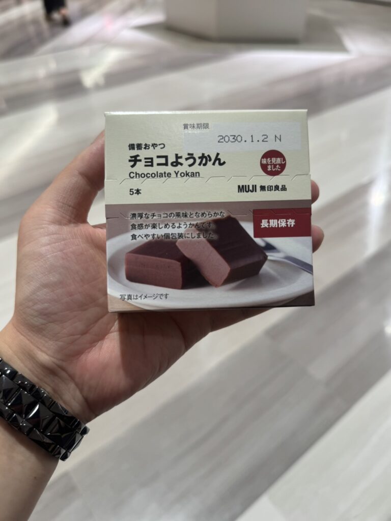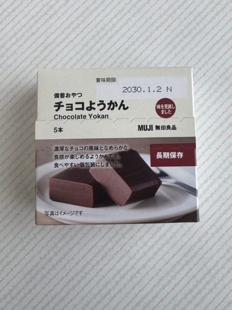 無印良品から『チョコようかん』が新発売されました。味を見直してさらに美味しくリニューアルされたとのこと。長期保管が可能で、非常食としても頼れる存在です。和菓子の伝統とチョコレートのモダンな魅力が融合した一品。パッケージを開ける前から、無印良品らしいミニマルな美しさに心が惹かれます。手で持つと意外にずっしり重いです。