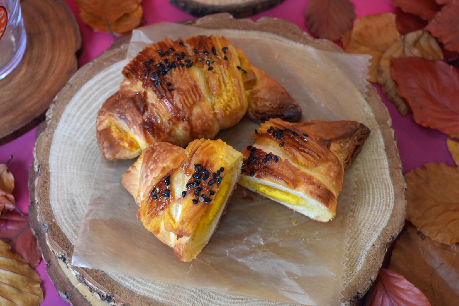 サクサクのクロワッサン生地に、濃厚な安納芋とチョコレートが織りなす秋のハーモニーは、まるで秋の収穫祭を口の中で味わうような体験です。