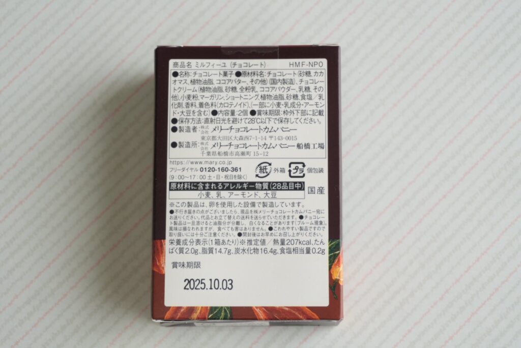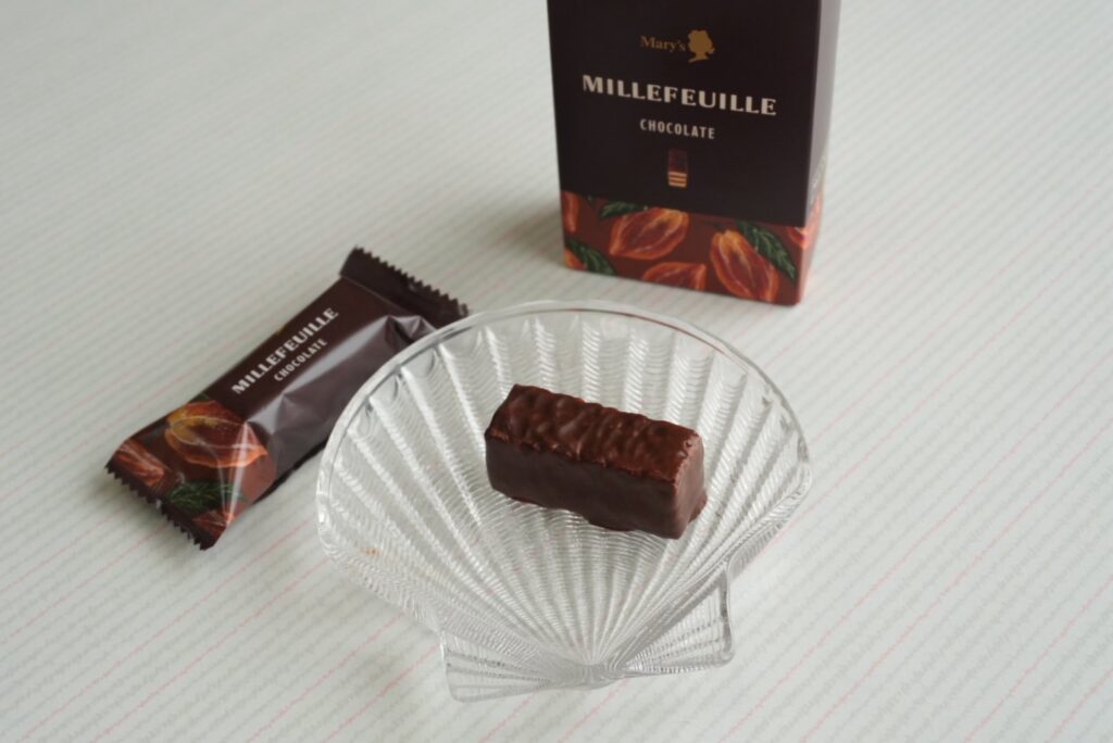 メリーチョコレートの「ミルフィーユ」をご紹介します。パリパリのパイ生地に、なめらかなクリームとチョコレートが絡み合うこのお菓子は、ティータイムやちょっとしたご褒美にぴったり。2011年の発売以来、季節限定の味も登場しますが、定番のチョコレートタイプは不動の人気。