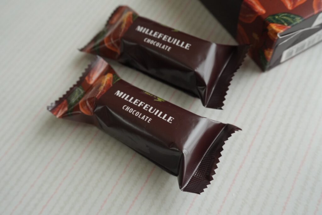 ミルフィーユはチョコレートの香りが飛ばないように1本1本個包装なのはありがたい。
