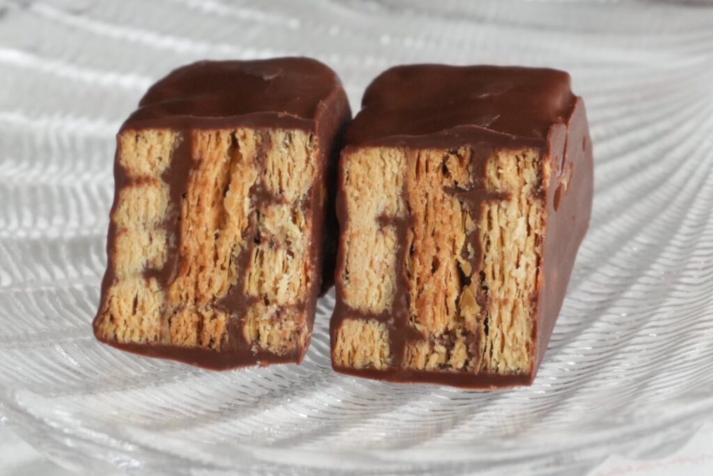1個があっという間に消えてしまうのに、満足感がすごい! チョコのコーティングは厚すぎず、パイの軽さを邪魔しない絶妙なバランス。