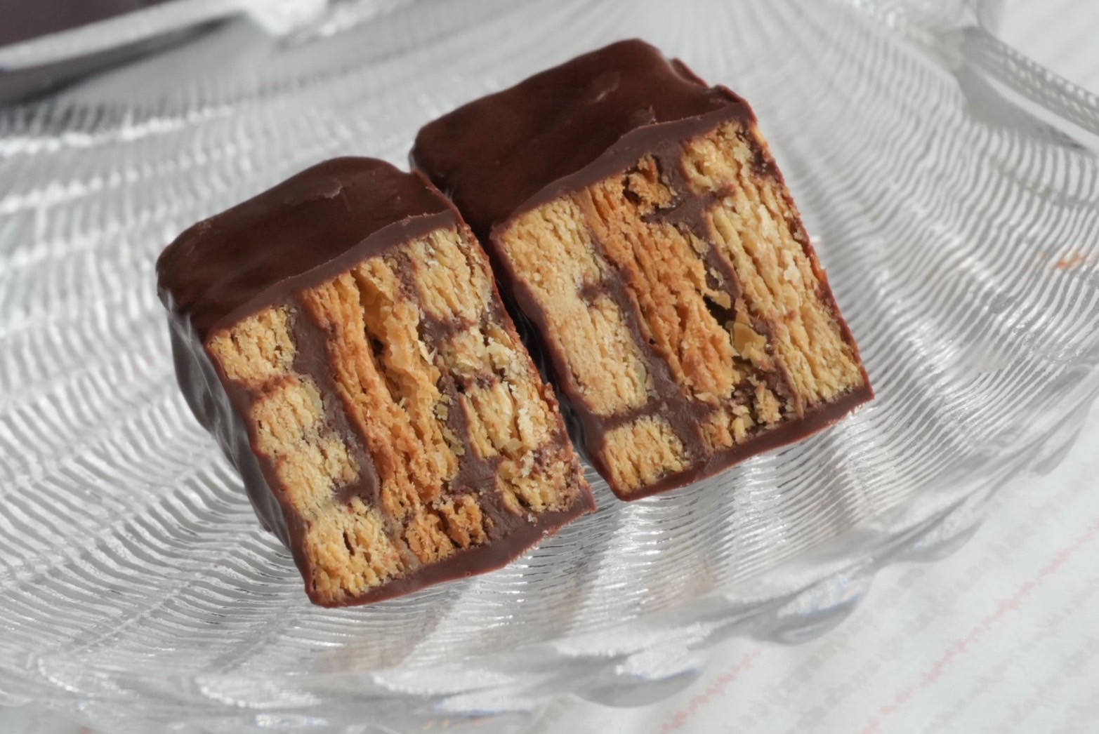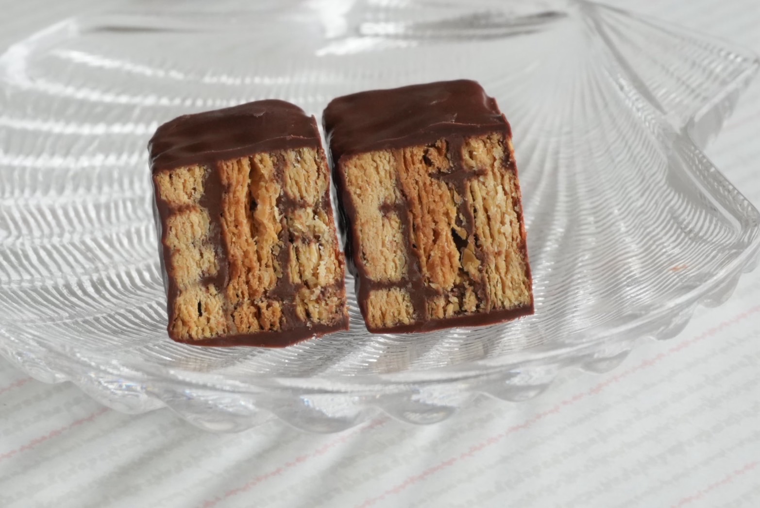 1個があっという間に消えてしまうのに、満足感がすごい! チョコのコーティングは厚すぎず、パイの軽さを邪魔しない絶妙なバランス。