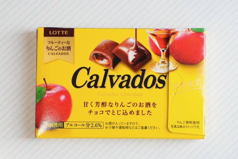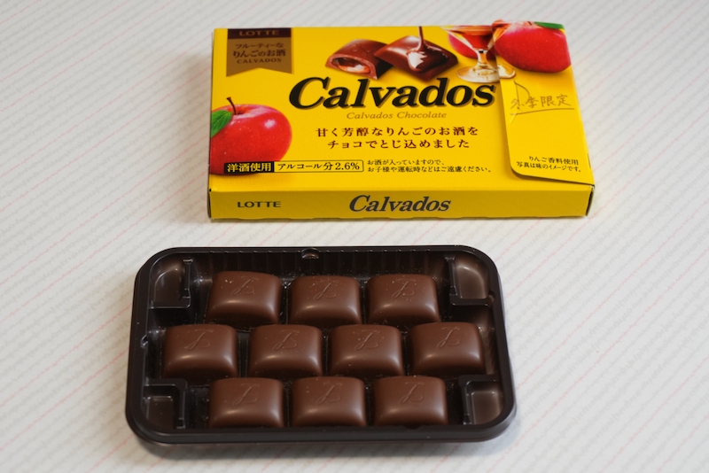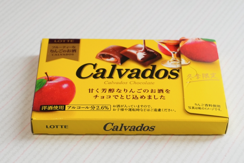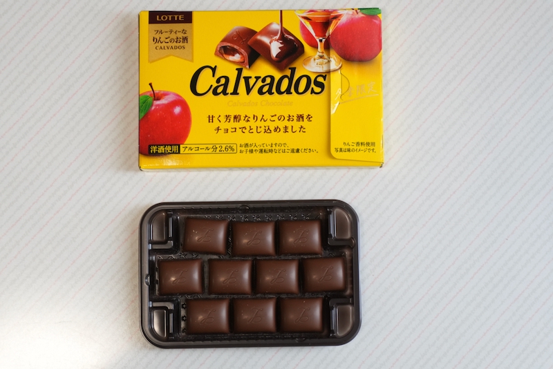 今回は、ロッテの洋酒チョコ『カルヴァドス』をご紹介します。ミルクチョコレートの中に、りんごの蒸留酒”カルヴァドス”のシロップを忍ばせた洋酒チョコレート。