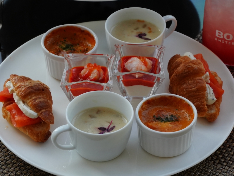 セイボリーは4品で、「タラバガニとイクラのカクテル(パプリカとセロリラブのムース)」「クラムチャウダー」「ポテトニョッキのアメリケーヌグラタン」「スモークサーモンとクリームチーズのクロワッサン・サンドウィッチ」。甘いだけで終わらず「食事感」が出るのが、個人的にかなり好みでした。