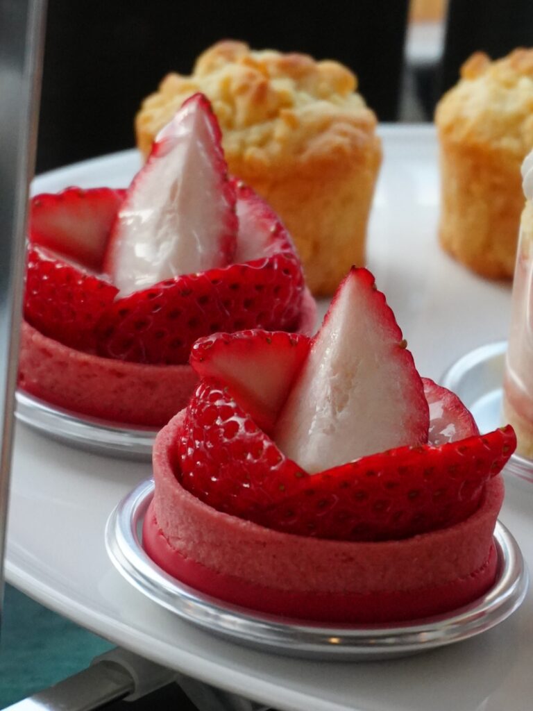 大きめの粒でも中心まで甘みが続き、最後のひと口で味が薄くならない。アフタヌーンティーは品数が多いぶん、フルーツの「強さ」が頼りになりますが、べにたまはそこをきっちり支えていました。