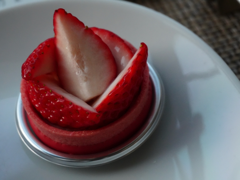 いちごの実力が一番はっきり出るのがタルト。断面の白い部分が広いのに、味が薄いわけではなく、中心まで甘みが続きます。
