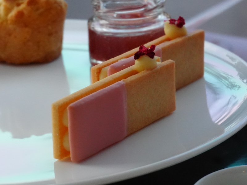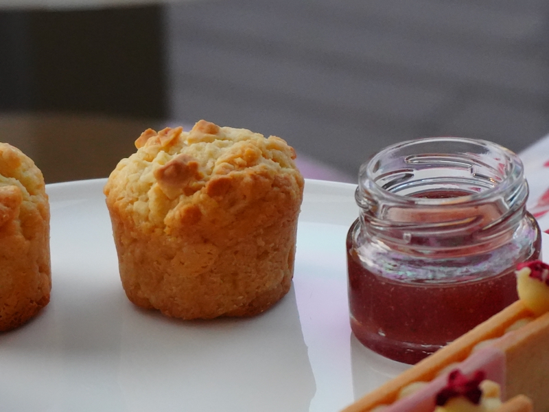 スコーンはホワイトチョコのコクを感じつつ、いちごのコンフィチュールが甘みを軽くしてくれます。口の中の水分が合わさるとしっとりしながら優しく崩れていきます。紅茶と合わせると満足感が一気に上がりますね。