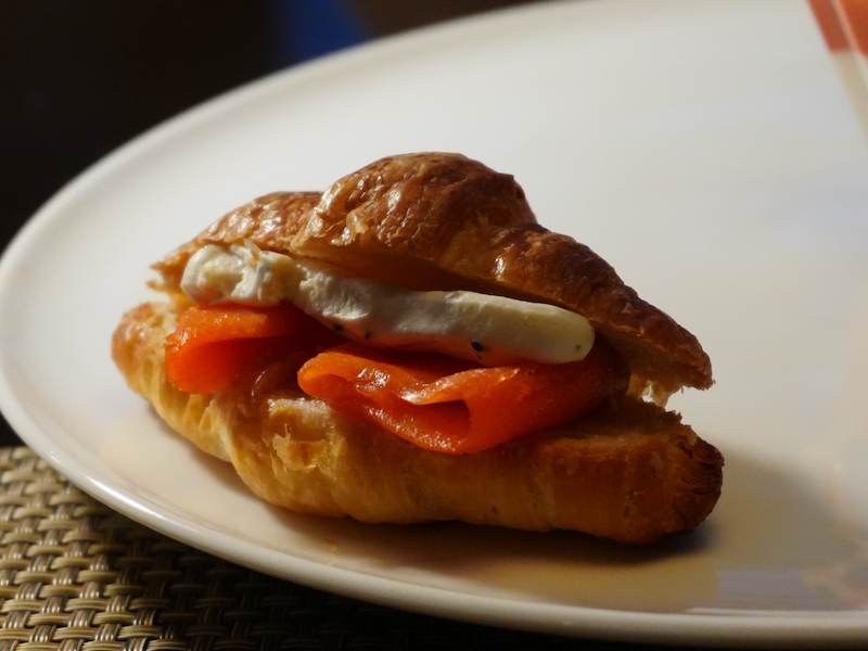 クロワッサンサンドはバターの香りで満足感が出るので、最後の方に食べると締まりが良かったです。スモークサンドとクリームチーズをサンドしてます。