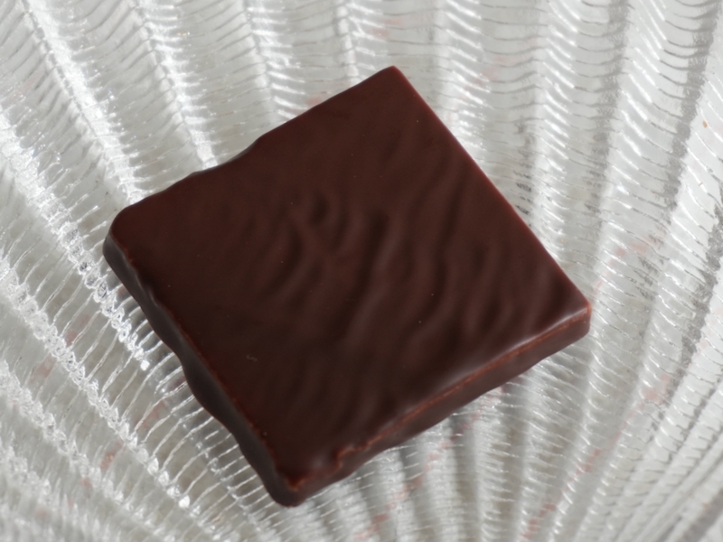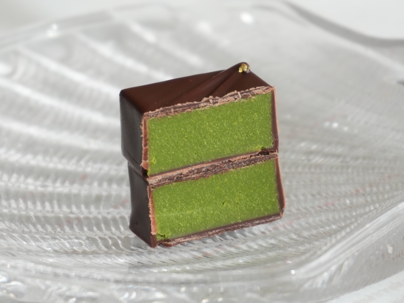 愛知県産西尾の抹茶の香りと渋みと、コーヒーの香ばしさが同居するショコラ。苦みの方向が違う2つが重なるので、香りがふっと広がりやすい印象です。抹茶とコーヒー、本来であればお互い力強い個性同士ですが、やわらかく繊細にまとめ上げられているところが印象的でした。