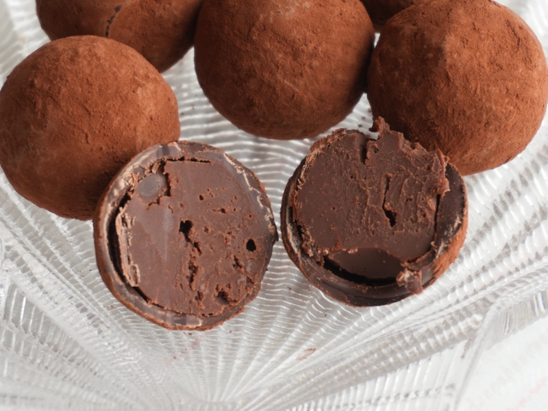 お酒好きに刺すならこれ一択。グアテマラのラム「ロン サカパ」がふわっと香るダークガナッシュを、ダークチョコで包んでカカオパウダーで仕上げています。