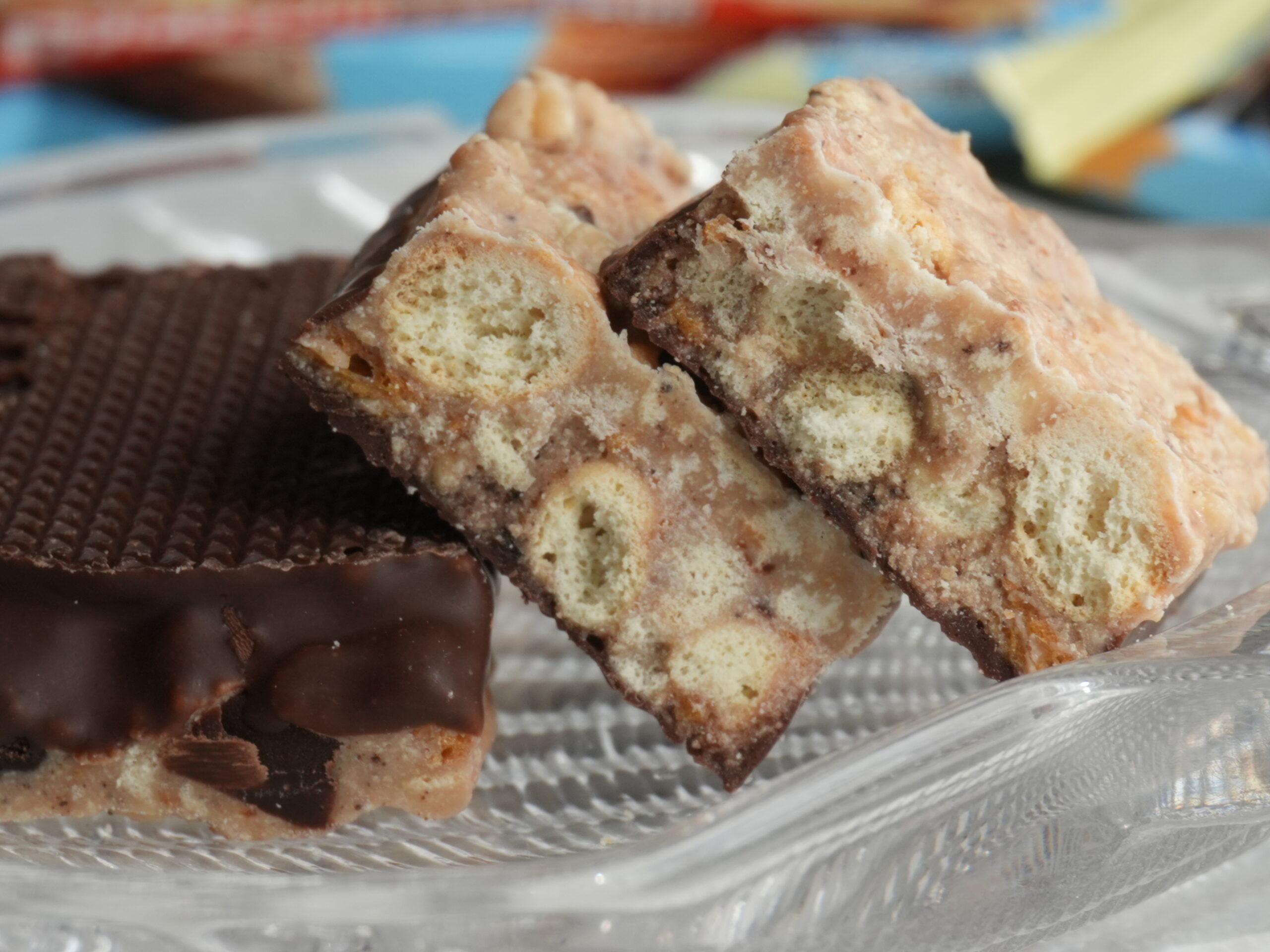 具材が細かく混ざってるおかげで、ただザクザクするだけじゃなく、いろんな食感が次々出てきます。ワッフルクランチのサクッと軽い感じ、ビスケットのしっかりした歯ごたえ、ココアクッキーのほろ苦いアクセント。全部が絡み合って、噛むたびに新しい発見があるんです。中までバニラ風チョコが染み込んでるから、どこを食べても味が均一で食べやすい。